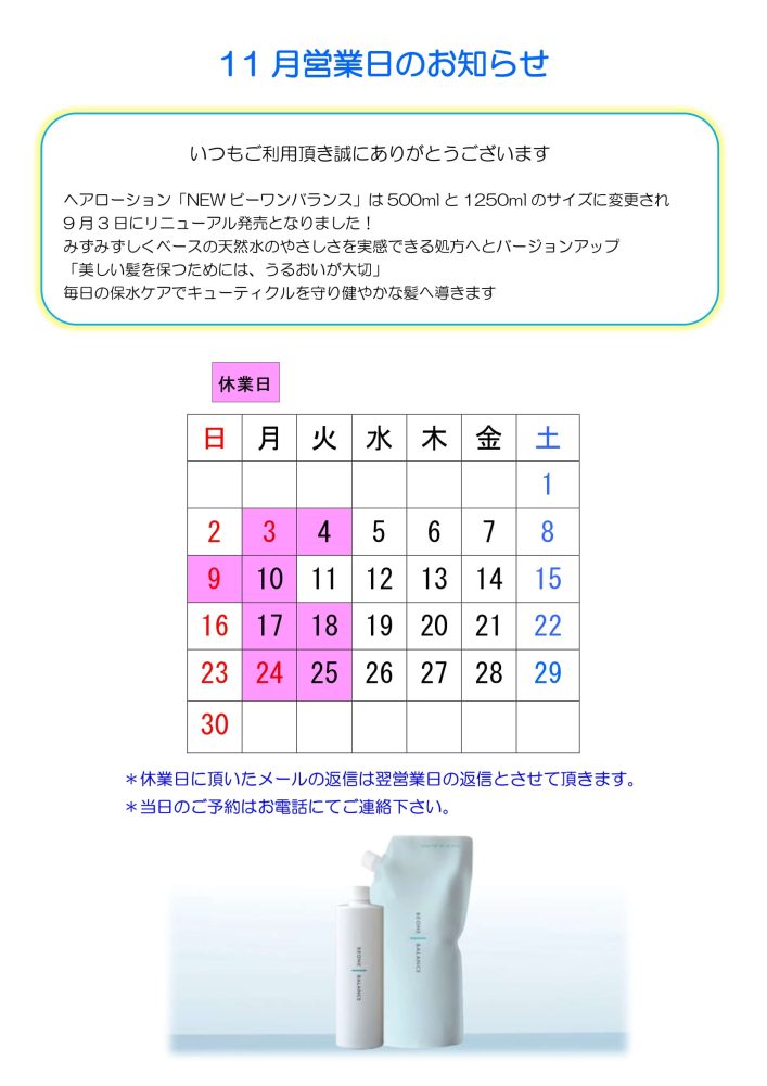 2025年11月営業日のお知らせ