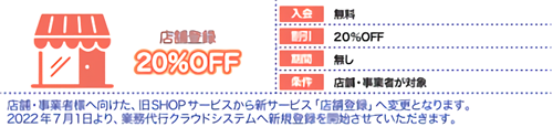 - 法人・個人事業主の方登録するだけで商品が20% off!!登録料は無料です。
