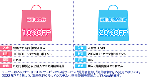 初回、定価で税込2万円以上購入していただくと愛用者に登録できます。