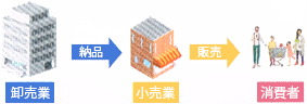 「商品の愛用と小売販売」+「愛用者・小売店へ卸売」